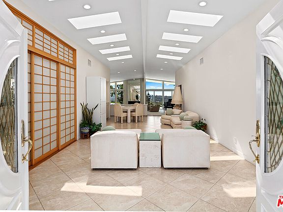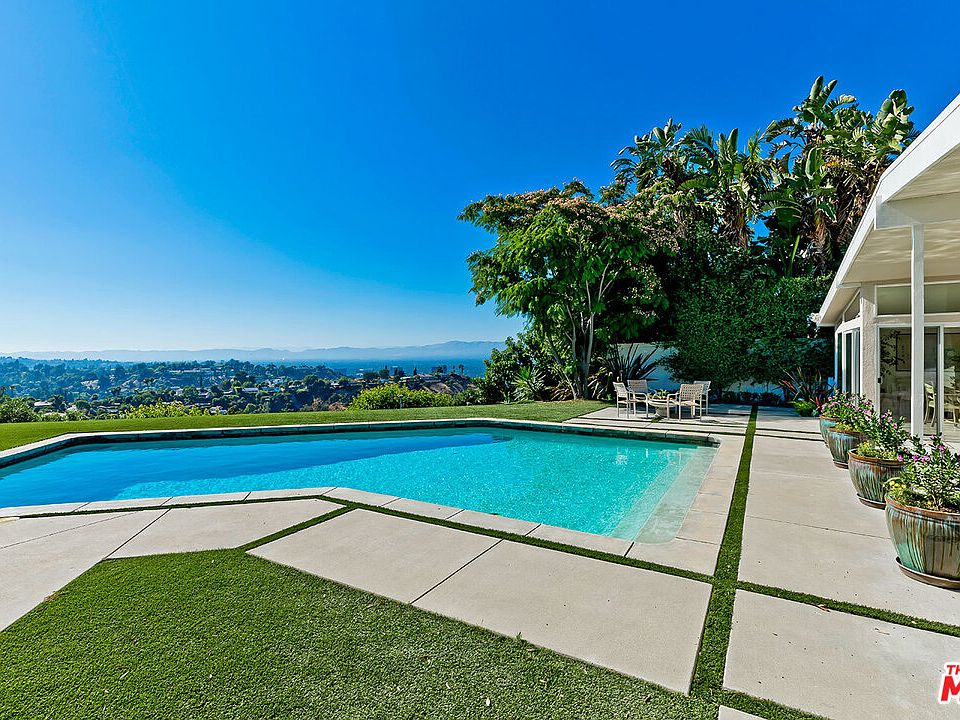 From low, sweeping roofline to spectacular backyard vista, this 1956 post and beam home in a coveted Sherman Oaks Hills neighborhood reflects Mid-Century style at its most exhilarating. Through the double front doors, the sightline runs below a double row of skylights all the way to a back wall of glass showcasing the pool and panorama beyond. The no-boundaries floor plan flows from luminous living and dining spaces to a vast, updated open kitchen. The view can be seen from everywhere. Baths have been enhanced to preserve the home's light, clean-lined ambiance, highlighted by expansive mirrors & pale marble and tile. Covered patios on the house & the one-bath pool house face a shimmering angular pool surrounded by an expansive grassy yard. It's all set against a panoramic view that extends out across the valley to the distant foothills. The location, adjacent to Bel Air and the Mulholland Corridor, is an easy commute to the studios, the Valley & the Westside. Also available for sale.