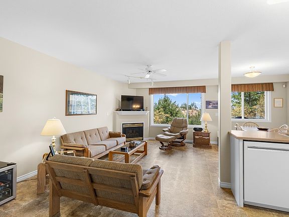 Backing onto Glen Canyon Park, this hidden gem of a neighbourhood offers peace, privacy, and convenience just minutes from Okanagan Lake, trails, and parks. This 4 bed, 3.5 bath half duplex is sure to impress! A charming front porch and spacious foyer welcome you into a bright, family-friendly home with vaulted ceilings, formal living/dining areas, and a recessed buffet. Updates include hardwood floors and new carpet. The kitchen features KitchenAid appliances, abundant cabinetry, a built-in desk, and flows seamlessly into both the formal and family rooms with a cozy gas fireplace. Enjoy alfresco dining on the covered deck with panoramic views. Upstairs offers a versatile landing (ideal office/homework space/kids play area), a primary bedroom with two closets (one walk-in), and a spacious ensuite with soaker tub and separate shower. Two additional bedrooms and a skylit 4-pc bath complete this level. The walk-out basement includes a large family room, bedroom, and 3-pc bath with access to the fully fenced, irrigated yard. Ample parking and storage with an extended driveway and double garage. New hot water on demand (2025), high-efficiency furnace and A/C (2023). Move-in ready and waiting for its next owners!