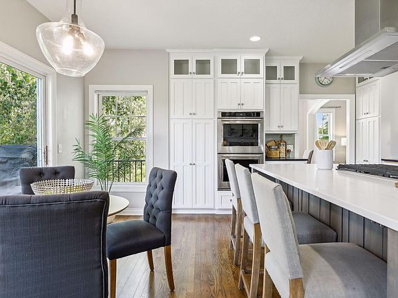Welcome to Sunfish Lake, where luxury meets relaxation. Enjoy deeded access to the lake with a dock, nature, water, the sound of sandhill cranes and so much more! Overlooking a pond, mature trees and wildflower gardens, this fully renovated 2-story walk-out boasts extraordinary finishes, open concept gourmet kitchen with beautiful custom designed cabinetry, center island, gorgeous custom glass tile backsplash and informal dining all overlooking breathtaking views. The pond is a perfect fun spot and is cleared for ice skating during the winter months. This floor plan is thoughtfully designed, light and airy with an upper-level primary suite, gorgeous custom luxury bath and walk in closet plus three additional expansive bedrooms with a renovated second bath. The lower-level walkout family room was beautifully designed complete with a custom wet bar, stone backsplash, granite counters, dishwasher, sink and wine refrigerator. The real showstopper is the fabulous swim spa located in the screened room off the lower level, perfect for unwinding while overlooking the beautifully landscaped yard. And of course, a private guest or teen suite completes the lower level living space. Step outside and access miles of walking and biking paths, perfect for enjoying the scenic surroundings. Conveniently located just minutes away from fantastic shopping, dining, and coffee spots, this home offers the best of both worlds - serenity and convenience. Don't miss out on this truly incredible find at Hamlet on Sunfish Lake.