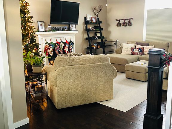 Beautiful 2 story home with a finished basement located across from Kiwanis Park, blocks from the new Discovery Elementary and property backs to green space. Upgraded open concept kitchen, dining & living room. Stainless steel appliances (wall oven/microwave) and gorgeous granite countertops. Wood floor throughout main floor and up the main stairs to 2nd floor hallway. Custom built-in desk space with quartz desktop. Walk-in Pantry. Separate laundry room on main floor off garage entry which has custom cabinet cubbies. Perfect for family organization! Large master bedroom with walk-in closet. Shiny master bathroom has 6ft jetted-air tub, roomy tiled shower with glass surround and quartz countertops. 3 more bedrooms located on 2nd floor with Master. Huge 5th bedroom, family room, play area and storage room in the finished basement. Custom blinds throughout with blackout blinds in bedrooms. Loads of storage on every floor!