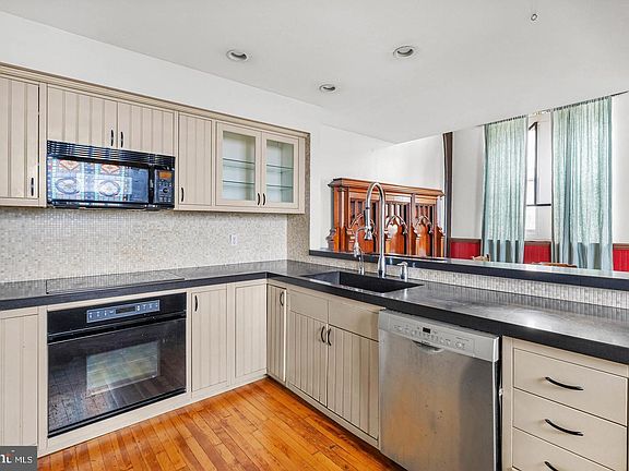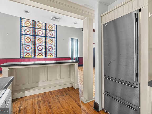 Available now! This 1 bed, 1.5 bath loft is set in a truly spectacular converted church from 1905, where dramatic architecture blends seamlessly with modern design. The main living area is anchored by a breathtaking stained glass window and soaring 25-foot ceilings, filling the space with natural light and timeless character. The sleek chef's kitchen offers ample counter space, an oversized island perfect for hosting, modern appliances, and abundant storage, making it perfect for cooking and entertaining. Just off the kitchen, a private paved patio offers a serene outdoor space for relaxing, gardening, or dining al fresco. A powder room and full-size laundry closet complete this level. Upstairs, the loft includes a spacious primary bedroom, a stylish full bath, and a flexible bonus area that can serve as a second bedroom, home office, or walk-in closet. Hardwood floors run throughout, and every detail reflects the rich history of the building. Located just steps from Wissahickon Station and close to Main Street's cafes, restaurants, and riverside trails, this is a rare rental opportunity not to be missed. Enjoy the convenience of onsite, covered garage parking for an additional $200.00 per month.