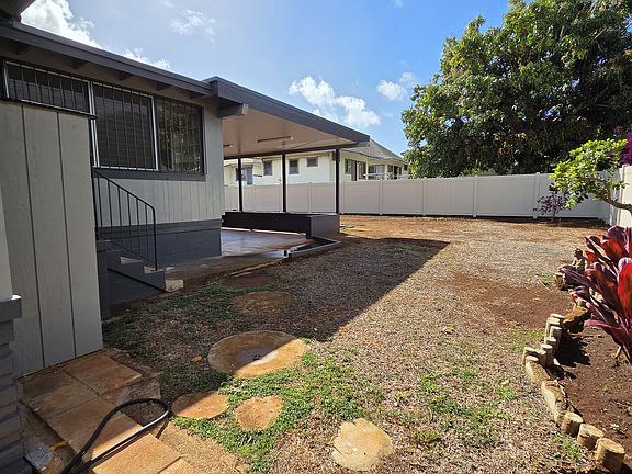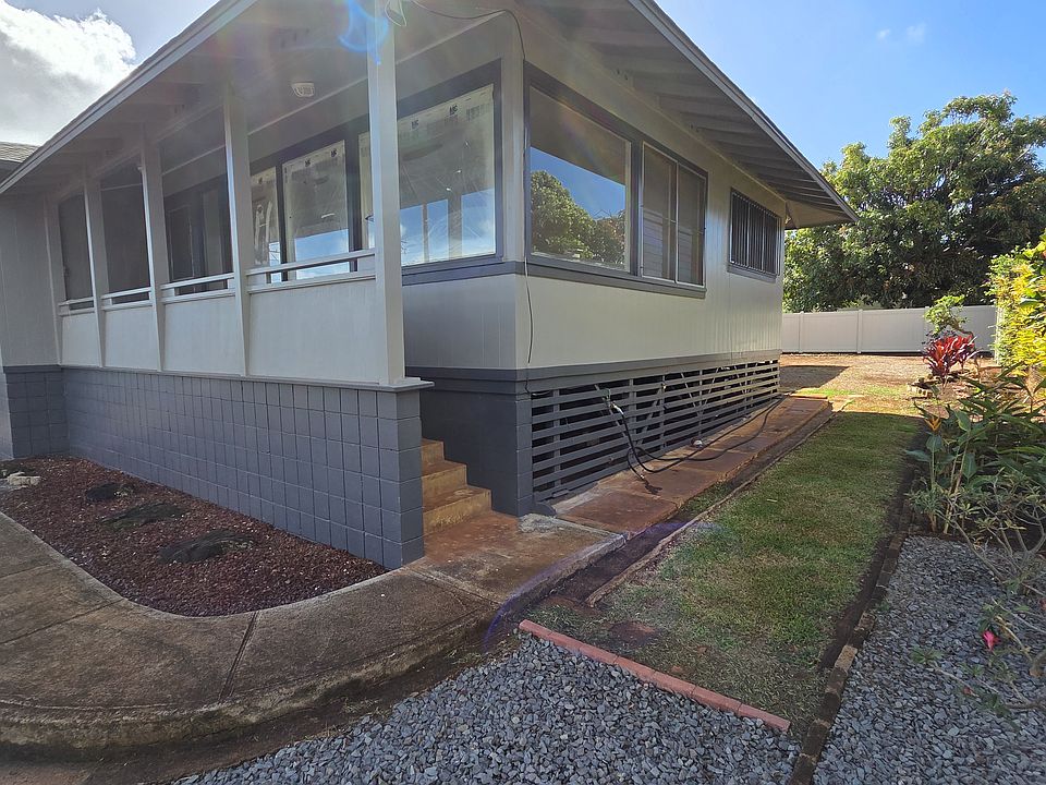 Charming, Bright, clean, spacious 3-bed 2-bath single-family home with a carport and large, unfenced yard. The footprint allows for great cross breezes (no air conditioning). The new renovation includes new paint, landscaping, and appliances, such as a gas range, refrigerator, and water heater. A new roof, louvered vinyl windows, and drapes are scheduled to be installed in the front room on November 24th. The home features beautiful, original hardwood flooring in excellent condition, as well as new vinyl flooring. Great floorplan includes a bonus room and built-ins everywhere. Enjoy this bright and open kitchen with new countertops and cabinets. Washing machine hookups and 110V electricity for a dryer are available. No pets policy in effect. Applications on the website. Pacific Core Properties Hawaii LLC (RB21977)