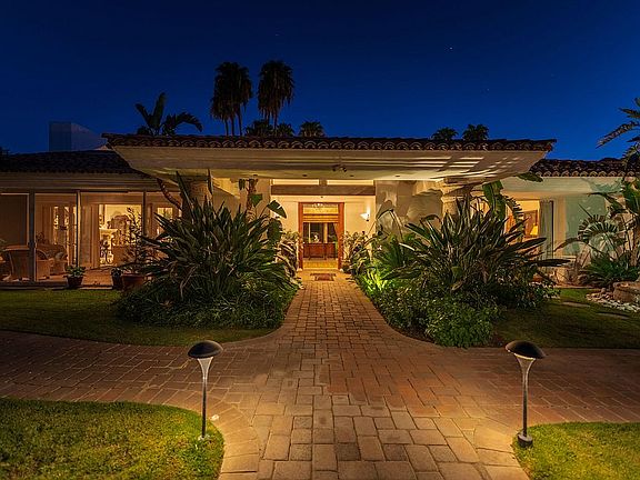 Villa Roberta in gated Bella Monte Estates in the Andreas Hills neighborhood in south Palm Springs. It is an approximately 8000 square foot Mediterranean style home with a casita on a double lot fee land, with stunning mountain views, last sold in April 2020.