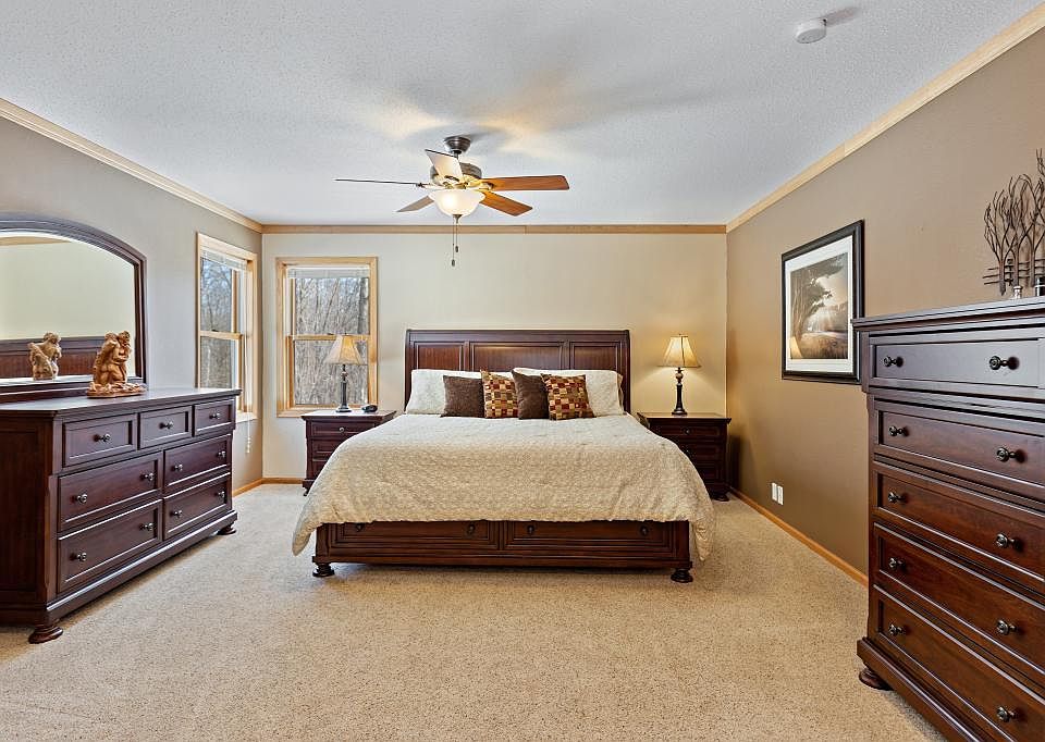 Welcome Home to your amazing wooded paradise! This fantastic four bedroom home with 3 bathrooms on just under 20 acres! Wooded property with a small field and an abundance of wild life! Updated Master Bath Suite with walk-in closet and full bath. Three bedrooms on main level and a large family room for gatherings. Updated guest bathroom, carpeting, and paint throughout the house. Newer kitchen appliances and updated light fixtures to top it all off! Large wood work shop in lower level, attached double garage and detached garage/shop, paved driveway and extensive landscaping throughout. Chicken coop included! Relax on the deck while enjoying the surrounding nature & wildlife.