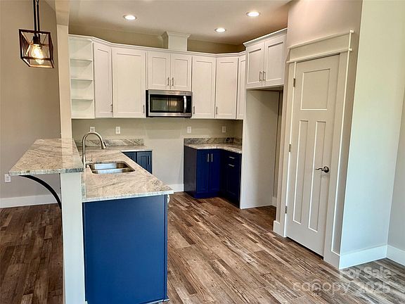 Absolutely beautiful new construction home, located in Forest City on quiet residential street! Gorgeous finishes throughout: LVT floors, granite countertops in the kitchen & bathrooms, 9' ceilings thru-out, and 12' ceiling in living room. Primary bedroom has en-suite bathroom with LUXURIOUS custom shower and TWO walk-in closets! This home has it all! Large back deck, plus unfinished basement with sewer roughed in. Do you want to add a kitchen, bathroom, or washer/dryer downstairs? It's possible! Rough-in for garage door downstairs also. This house is about 95% finished. The builder has just a couple of finishing touches to complete. Just a few blocks from the beautiful Thermal Belt Rail Trail too! Come out and see it today!!