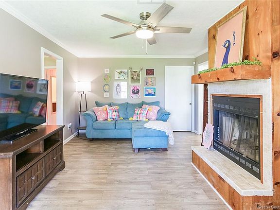 Check out this adorable home in Moss Bluff! The kitchen has all stainless steel appliances, while the living room features a cozy fireplace. The primary suite is massive with a walk in closet and a large soaking tub. One of the bedrooms is oversized; it can fit two queen sized beds. It's located in flood zone X, so flood insurance isn't typically required when financing. Schedule a showing to see everything this home has to offer! Please note: all measurements are more/less and the fireplace is currently painted white.