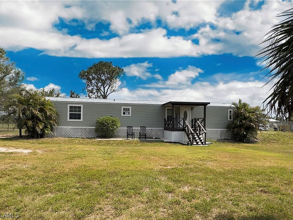 Contract fell through, great opportunity to get this "Dollhouse on Acreage"! The 3/2 manufactured home sits on 2.39 acres of pure rural land for easy country living. This newly and exceptionally remodeled manufactured home has a large covered "rocking chair" front porch and larger screen enclosed back porch which overlooks the acres of cleared pasture. The screened back porch adjoins the kitchen and dining area through a lovely set of French doors. Behind the home is a sturdy outdoor covered "mini-barn"/small stable area. It is large enough to transition into a 2 or 3 stall horse barn with tack and feed enclosed storage or a covered equipment area with a lockable tool shed or a 2 car carport. This home has a newer a/c unit, a metal roof, new flooring, newer and well maintained kitchen appliances and the interior has been freshly painted. The zoning is RR so bring your horses or other farm animals. The entire 2.39 acres are fenced and there's a lovely pond on the south portion of the property. This location is rural but is located only a few minutes from LaBelle. It is located right off of SR 29 S and close to the new Helms Road Extension for easy access to SR 80 and Fort Myers.