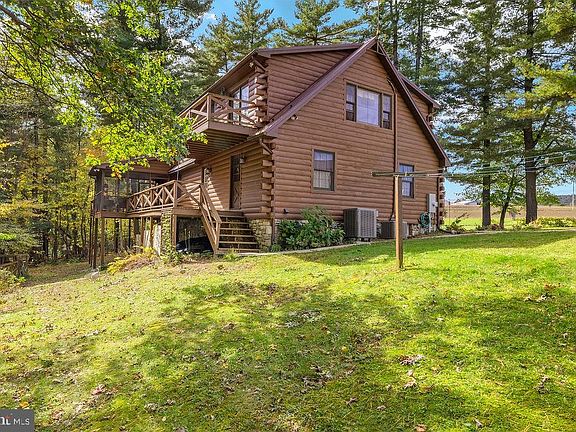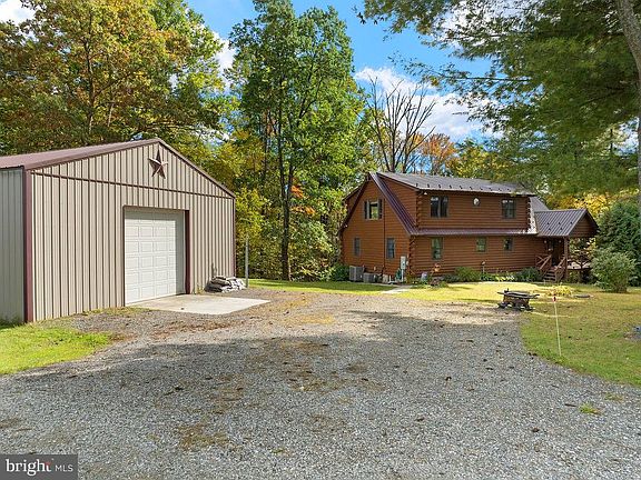 Beautifully maintained secluded handcrafted custom-built rustic log cabin (recently re-stained in 2024) on 12 acres with a 30x50 Morton Building as a bonus!! Don’t miss out, three bedrooms and two full baths 2100 sq. ft. of living space with full unfinished insulated walk-out basement, workshop, coal stove, ready for completion. Metal roof, stone foundation, grape arbor, stamped concrete sidewalk, large wrap around deck with screened in porch surrounded by woods for nature lovers. Open floor plan, tongue and groove 8” logs throughout and hand-crafted doors. Updated kitchen with bar for extra seating, a private balcony off the primary suite and barn doors on walk-in closet and primary bath. Loft area for office or sitting area over looking family room with large stone ventless gas fireplace with damper can be converted to wood. Morton building offers concrete flooring, extra height, 100 AMP electric, one overhead door and one slide door, lots of storage or workshop. Move in December 15th, perfect Christmas present!