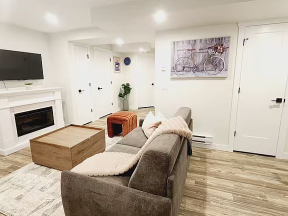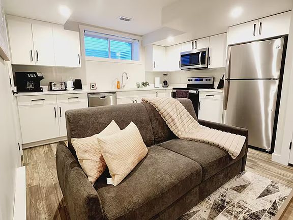 Amenities: Full kitchen, in-suite laundry, dedicated workspaces, USB wall outlets, ample storage, private entrance, fireplace
