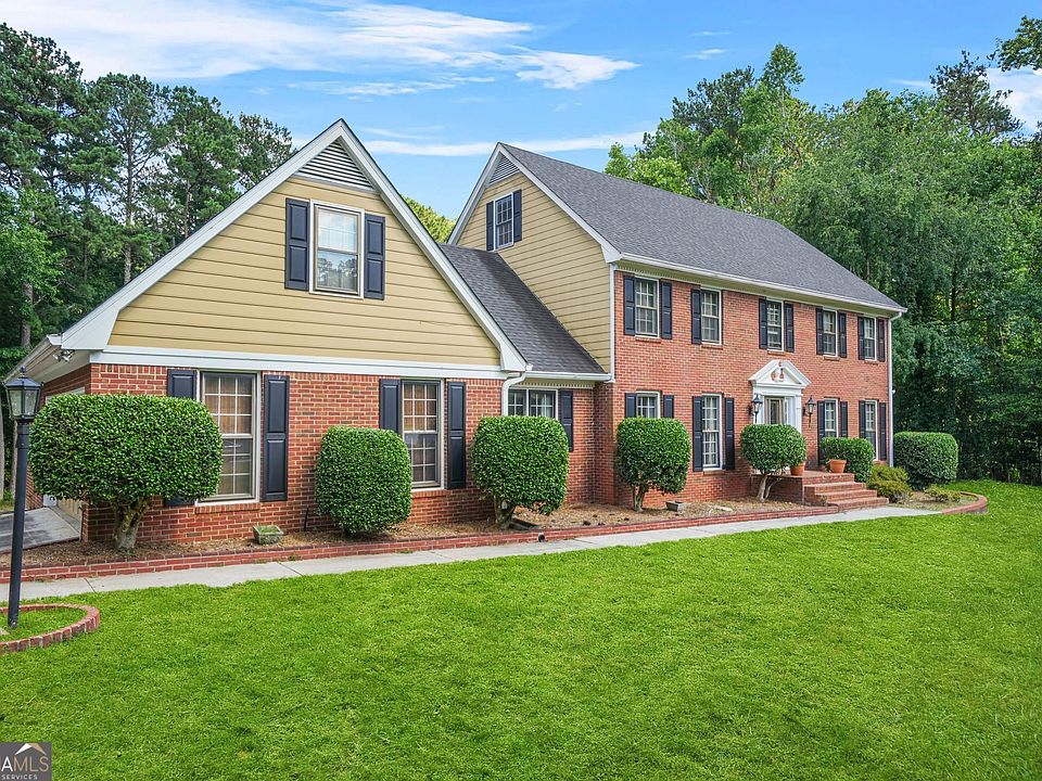 Welcome to this beautiful executive home nestled in the exclusive Dix Lee On neighborhood-perfect for HGTV enthusiasts ready to add their personal touch! Priced to sell, this stately 6,000+ sqft 4-sided brick residence offers stunning curb appeal and spacious living across three impressive levels. With 5 bedrooms and 4.5 bathrooms, there's room for everyone to live and grow. As you arrive, the long driveway and side-entry two-car garage offer both convenience and charm. Step inside to an elegant foyer flanked by a formal dining room and living room. The cozy family room features a classic brick fireplace, while the eat-in kitchen boasts views of the sunny breakfast area and the inviting sunroom. The owner's suite is conveniently located on the main level and includes two walk-in closets and a private bathroom with a water closet, tub and separate shower. A hidden staircase in the laundry room offers an alternative access to the upper levels, where you'll find four additional bedrooms, three full baths, and generous walk-in closets. The terrace level offers even more: a family room, wet bar, additional garage space, and ample storage. Enjoy Georgia's four seasons while hanging out in the sunroom overlooking the grassy backyard. Located minutes from Trilith Studios shopping and dining district, Atlanta International Airport, Downtown Atlanta, and Fayette Piedmont Hospital-this home is an incredible opportunity in a sought-after community! Home being Sold As-Is.