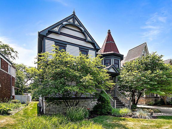 Welcome Home! This extraordinary Victorian home, built in 2006, boasts a captivating design with a soaring turret. The house offers a great flow for entertaining, with large room sizes and rich, dark hardwood floors. The first floor features 10-foot ceilings and architecturally interesting mill work, adding to the home's charm. The gourmet cherry kitchen is a standout feature, complete with a tin ceiling, granite counter tops, and top-of-the-line stainless steel appliances. A walk-in pantry provides ample storage space for culinary enthusiasts. Adjacent to the kitchen is a first-floor family room, which showcases an amazing coffer ceiling and a built-in work station, adding functionality and elegance to the space. The primary bedroom en-suite is a luxurious retreat, featuring a spa-like bathroom and a walk-in closet to accommodate your wardrobe needs. The attention to detail and design carries into the space, providing a serene and comfortable atmosphere. The finished basement offers additional living space, providing room for various activities and storage options. The deep lot has been professionally landscaped, enhancing the overall curb appeal and offering a beautiful outdoor setting with paver patio for relaxation and recreation.