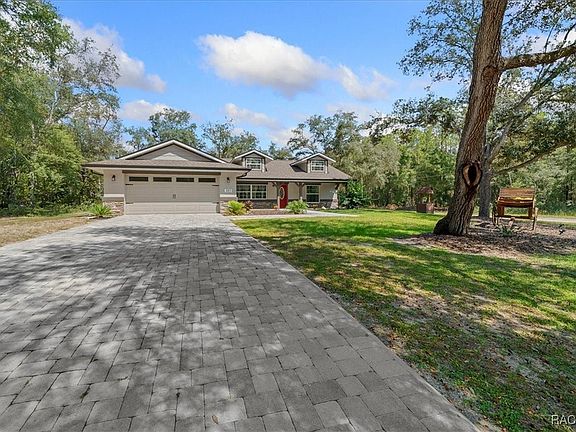 Experience the charm and quality of this 2022-built 3-bedroom, 2-bath home offering 1,540 Sq.Ft of thoughtfully designed living space that exceeds typical new construction. Perfectly set on a desirable 0.28-acre corner lot in Citrus Springs, this home blends modern features with timeless character and thoughtful finishes rarely found in new construction. From the moment you arrive you’ll notice excellent curb appeal with a paver driveway, manicured landscaping and charming dormers that fill the interior with natural light. At the heart of the home the open-concept living room, dining area and kitchen flow seamlessly together creating an inviting space for everyday living. The kitchen is a standout with elegant granite countertops, soft-close cabinetry and a spacious pantry—perfect for both daily meals and hosting family gatherings. The split-bedroom floor plan provides the ideal balance of privacy and functionality. The primary suite is a true retreat, set apart on one side of the home, featuring a dramatic dormer ceiling, a large walk-in closet,additional closet and en-suite bathroom. On the opposite side two additional bedrooms and a full bath are perfect for family, guests or a home office. Outdoor living is equally impressive, the covered front porch offers a relaxing spot to greet neighbors or unwind, while the 10x20 screened lanai provides space for grilling, dining or enjoying the Florida lifestyle year-round. A separate patio adds even more outdoor living options. This home comes with the added benefit of no HOA fees while still being close to everything the Nature Coast has to offer. Residents enjoy easy access to the Citrus Springs Golf & Country Club, walking/biking trails along the Withlacoochee State Trail, local parks, great schools and convenient shopping and dining—all just a short drive from the crystal-clear waters of Rainbow Springs & the Gulf of Mexico. Schedule your Private showing of this gorgeous home today!