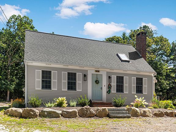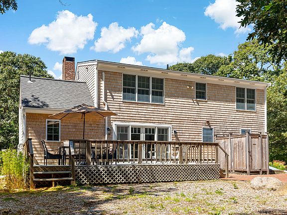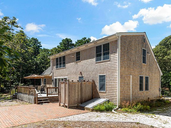 This 3 bedroom, 2 bath contemporary Cape has plenty of smart updates that make this a great vacation home or the ideal place to put down some roots. The first floor has an open floorplan with an updated kitchen with an island workspace looking out to the vaulted living with a skylight and wood-burning fireplace, hardwood floors, and mini-split AC. The updated full bath has a stackable washer/dryer and a unique barn-style door. Also on the first floor is a large front-to-back primary bedroom with new luxury vinyl flooring. Upstairs we have 2 more bedrooms and another updated full bath with another barn-style door. Also, mini-split AC throughout, and newer furnace and hot water and Town water. Outside we have a larger deck and new outdoor shower w/changing area, a hardscape patio. and a shed. Also, new shingling and Azek trim. Located at the very end of a dead-end paved road we have maximum privacy, yet not too far from the bike path or the Seashore beaches. Home has a good rental history and is being sold 'mostly furnished'. This home is ready for your family to enjoy. Dream here!