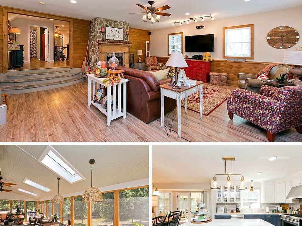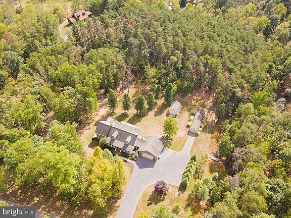 This inviting, stone Cape Cod sits on 5 acres just minutes from Winchester! Eat-in kitchen adjoins living room with stone fireplace and includes stainless steel appliances, quartz counter tops, new island & flooring. The grand main level 24 x 24 master suite has a gas fireplace and walk-in closet. Fully finished basement includes recreation room with custom made bar, built-in gun safe, additional stone fireplace, family room, a full bath, and two additional rooms. Spacious, 724 sq ft garage, a storage shed & workshop, fire pit for entertaining, hot tub on back deck, and large screened in porch. Many custom features including wood shelving pantry closets, shiplap fireplace surround and batten board stairway with antique newel post. All new paint throughout.