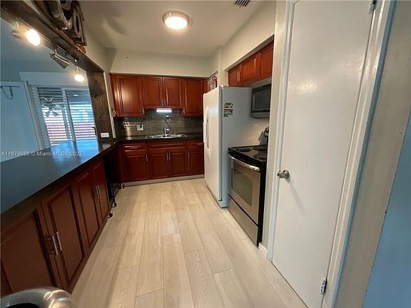 Welcome to your new home in peaceful North Miami! This well-designed, corner lot, 3-bedroom, 2-bath residence with a 1 car garage features a smart split layout, offering privacy with bedrooms tucked away in their own wing. The bright living room, open kitchen, and dining area create a warm and inviting space for everyday living. Enjoy a beautifully remodeled master bath designed for comfort and relaxation. Step outside to a spacious backyard with a covered patio and built-in BBQperfect for entertaining or family gatherings. Located close to shops, supermarkets, parks, beaches, houses of worship, and major highways, this home offers both convenience and tranquility. Don't miss outschedule your visit today! Available for immediate move in. Quick approval process.)
