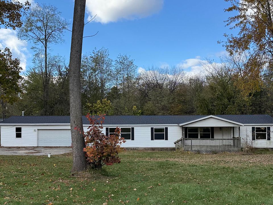 Property is sold AS IS. This manufactured home on 1.46 acres is ready for renovation and offers a great foundation to make your own. With the floors already stripped back, you have a blank canvas to start your updates right away. A little paint and finishing work will go a long way toward bringing this home to life. The layout includes three bedrooms and two full baths, a spacious kitchen with an island, pantry, and ample counter space, and an eating area with a slider to the deck. The dining room and den are open to the living room, creating an easy flow. The attached garage includes additional space with a workbench.