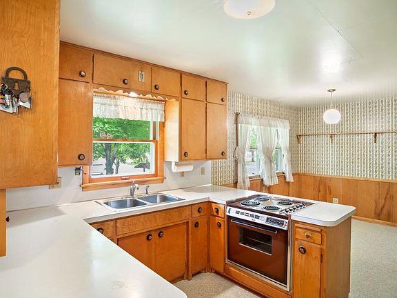 Large walkout 3 bedroom rambler located on a beautiful large corner lot over looking the park. Walk-out Lower Level features additional kitchen and living area for family and friends with it's own entrance. Close to Pleasant Lake. Great spot to watch activities at the park. One time owner. Attached single garage plus an additional garage. Large country kitchen with main floor laundry. House is in need of "TLC".