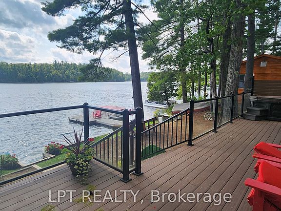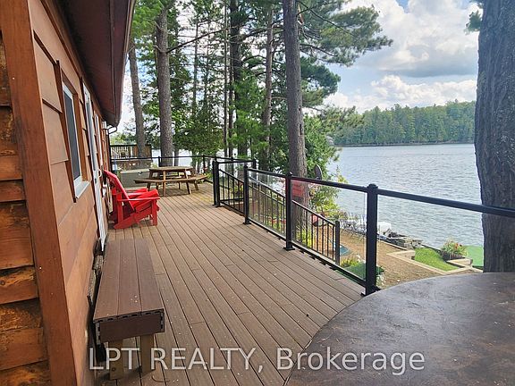 Beautifully Upgraded Cottage in an Exclusive, Private Setting Uniquely situated in a very scenic, desirable location on Patterson Lake just over one hour from Ottawa. Property comes with contents as listed in the inclusions as well as fully furnished Cottage, two fully furnished Guest Cabins, two Storage Sheds, and two Wood splitting stations. Many upgrades include a New Guest Cabin in 2023, New Roof on Guest Cabin 2 in 2019, New Laminate Floor and Steps on Guest Cabin 2 in 2017, New wrap around PVC Deck, with Lighting, Railings and Stairs in 2019, New Knotty Pine Floors in the main cottage and baseboards in 2009, New main cottage windows in 2008, New dock with Flo thru deck in 2012, Retaining Wall repaired with steps installed in 2023, New flagstone Firepit installed in 2022, Entire property landscaped by Dutch Landscaping including planters, plants, river stone steps, and flag stone flower beds in 2019, Refaced and stained both wood sheds in 2017, New steel roof on the main cabin and guest cabin 2 in 2018. Approximately $143,500.00 in improvements and upgrades since 2008. Don't miss your opportunity to get this fantastic turn key property!