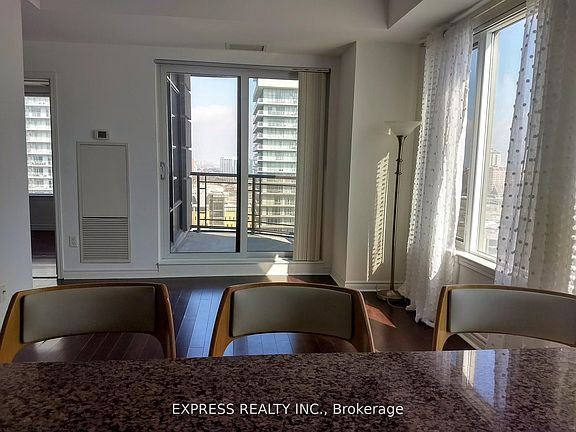 Approx 709 Sf (as per builder) bright and spacious 1+Den & 2 Bathrooms across from Square One w/ South view. 1 Parking & 1 Locker included. Spacious, open layout, den is perfect for young professionals and students that require a home office. Building amenities include: Concierge, exercise room, indoor pool, party/meeting room & more! Minutes away from Square One shopping centre, YMCA, library cinema, parks, schools, restaurants & entertainment and more. Pictures taken prior to tenant move in.