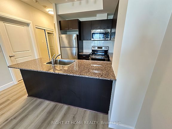 Stunning 1+den, 2-bath suite in the sought-after "Chicago" building. Bright and functional layout with open balcony and panoramic northeast views. Modern kitchen with stainless steel appliances. Spacious primary bedroom with 4-piece ensuite and den, perfect for a home office. Includes parking. Steps to Square One, Sheridan College, transit, Celebration Square, and major highways.