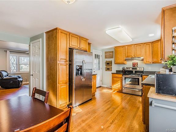 Welcome to this Immaculate, updated Ranch in a quiet neighborhood nestled between Noden-Reed and Spring Park in Windsor Locks. Perfect opportunity for first time buyers, or folks looking to downsize. Impeccably kept and move-in ready! Neutral color palette will complement all of your belongings. This home offers an updated eat-in kitchen with hardwood flooring, matching stainless steel appliances, ample cabinetry and a pantry. The large living room is bathed in natural sunlight and comes with a nice fireplace to cozy up to! Head down the hall to find a full bathroom and 3 bedrooms coming with ample closet space, including the master with hardwood flooring and a ceiling fan! This property offers a lovely, private backyard which is level and fully fenced making a great place to play and perfect for all of your furry friends! The lower level has laundry hook-ups and a walkout adding additional open storage space. A carport is a nice added convenience along with Central Air already installed! All that is left to do is unpack your bags!
