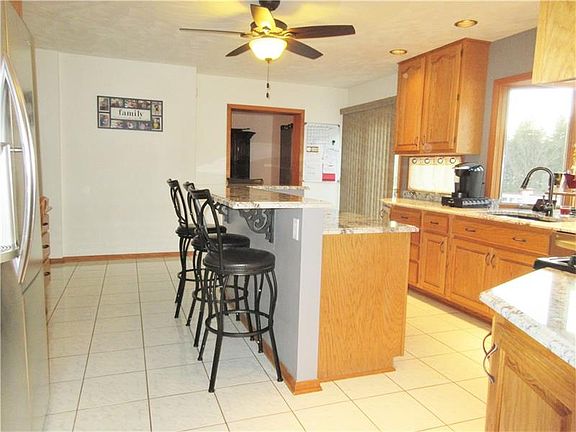 Unique all brick home with a huge addition in 04. Large kitchen with new granite counter tops, ceramic tile floor, all new fixtures & new ceiling fan, sliding glass door leading to the 33x16ft. deck that overlooks the huge fenced in yard. Large living room with 2 skylights, full bath, walk-in closet, sliding glass door leading to deck & new ceiling fan. There are 2 stair cases leading upstairs to the 4 bedrooms & 2 full baths. Finished lower level with the family room & game room separated by an open 2 sided gas fireplace, stone on one side & brick on the other. There have been many updates including all new ceiling fans with lights, bar & 1/2 bath in game room, security system, ceramic tile floor in laundry and additional room, re-paved driveway, concrete 16x10ft. patio and new red lava rock!