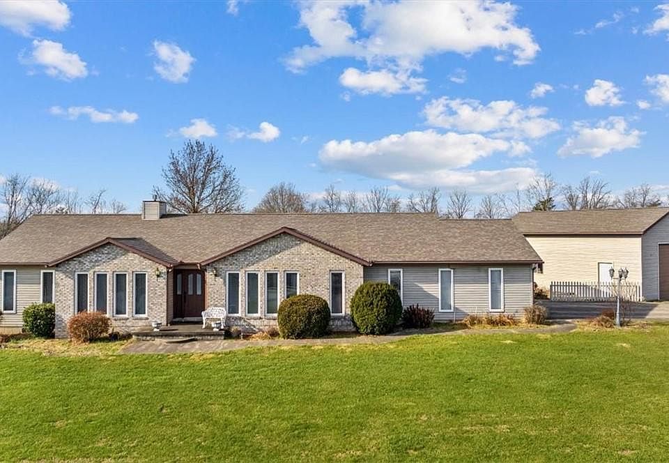 Town and Country location minutes from downtown Belpre and Parkersburg. This maintenance free ranch features open floor plan sited on 1.9 acres. You will appreciate fireside Great room, kitchen with dining bay, living and dining rooms/ home office, owners en suite, two guest rooms and second full bath. Private fenced back with patio, two car attached garage and 20x34 detached utility garage or work shop. Nice upgraded condition. Owner relocating.