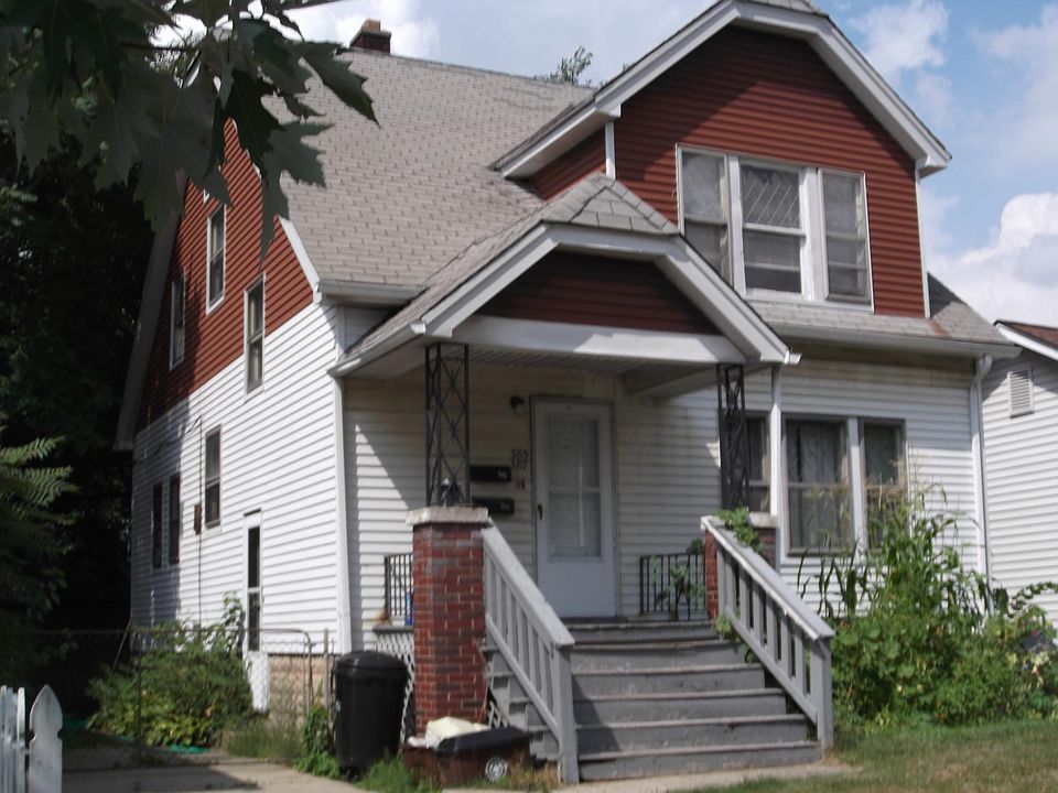 This spacious one bedroom upper flat is unique in that it has a separate formal dining room in addition to the bedroom, living room, kitchen and bath. There is also a full basement with a washer and dryer (NOT coin operated) shared with the lower unit. There is a two car garage on the property which cannot be used for day to day car storage since the hard surface driveway does not extend to the garage and therefore is not included in the rent.