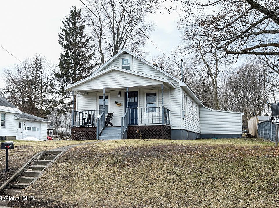 Beautifully updated 2 bedroom, 1 bath bungalow filled with natural light and high ceilings. Updated flooring, bathroom and windows throughout. Attic has been finished to include extra bonus space to grow into or create a haven away from it all! Updated basement includes laundry area, extra storage, high ceilings, and bonus hang out space. Outdoor space is cleared with petite garden area, one car garage, car port, and covered sitting space. Totally ready for you to move right in!