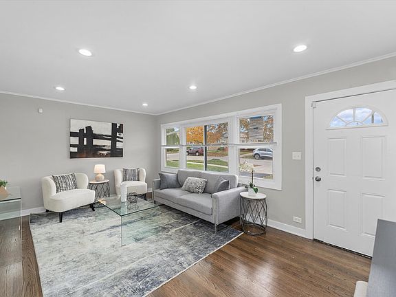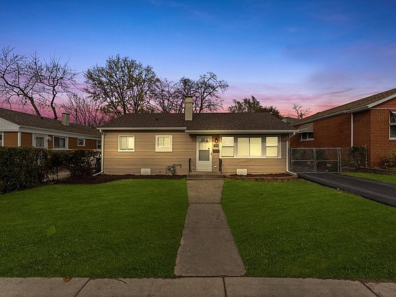 Welcome Home!!! Cozy staged 3 bed 1 bath ranch in Chicago Heights. Walk into this inviting home to beautiful hardwood flooring, freshly painted walls and recessed lighting. Updated eat-in kitchen with brand new vinyl flooring, white shaker cabinetry with modern hardware, quartz countertops and white subway tile backsplash. Brand new stainless steel appliances to finish the look. There are 3 generous sized bedrooms with continued hardwood floors. A full updated bath with gorgeous tilework and finishes. Separate laundry room with vinyl flooring and washer/dryer hookups. Don't miss the fully fenced in huge backyard with new driveway. New AC installed and new roof. Schedule your showing today!