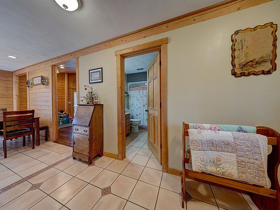 Wood fireplaceLog homeRenovated fireplaceHeated by radiant heatVaulted ceilingsGranite counter topsDouble vanity sinks