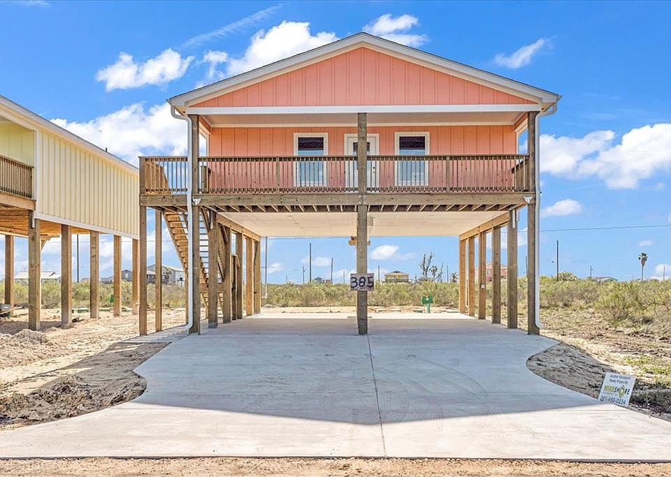 Beautiful stilt coastal cottage with all that you need for your weekend retreat, Second home or short term rental as an investment. 3/2 with split Bedrooms, Vinyl Plank flooring throughout, Granite counters, Stainless Appliances and inside utility room with storage. Large covered porch and a portion of the underneath is being enclosed as a tandem Garage. 2 other homes next door at 386 & 387 are also for sale $339,900.00 w/o the Garage.