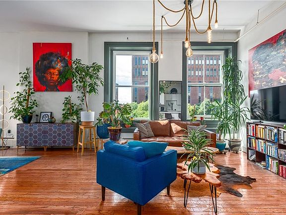 Welcome to the "Empire" penthouse at The Conrad. Bookending the Downcity Theater & Arts District at the corner of Westminster and Empire street, The Conrad's situation affords quick and easy access to Providence's finest retail conveniences, eateries, and entertainment. Custom cut high efficiency windows present beautiful west/southwestern views, granting a stunning golden hour, and plentiful natural sunlight throughout the day. Smart kitchen with a breakfast bar make entertaining and dinner parties a breeze. The bedroom has two closets, one of which is walk-in. The tiled bathroom contains the unit's washer/dryer. The hanging light fixtures are on dimmers, so you always have control over mood. Unit comes with assigned basement storage, and the association fee includes heat provided by baseboards throughout the unit. Recent central air keeps you cool during warm city summers... An incredible value for premium downcity living space, and a rare opportunity at a penthouse unit in one of the most highly desirable Arts District complexes!