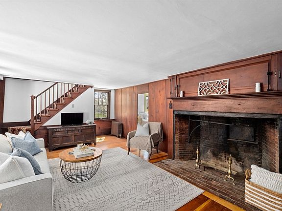BOM THROUGH NO FAULT OF THE PROPERTY | Set on 1.4 acres & meticulously restored by the current owner, this 1740 center chimney Cape has all the antique charm you could want & all the modern updates you need. The central LR features beautiful wide plank floors, rich wood paneling, & a 7-foot fireplace w/beehive oven. A charming sitting/dining room connects to the spacious first floor BR through the original foyer; both feature wainscoting, crown molding, & large fireplaces. The 2020 kitchen addition features all new cabinets, SS appliances, butcher block countertops, soaring ceilings & cozy dining area. A full bath & mudroom/laundry complete the 1st floor. Upstairs is another full bath & 2 additional BRs with built-ins & antique wood floors. Outside you’ll find a detached 2 car garage w/finished bonus space at the back, chicken coop, fruit trees, raised beds, & a spectacular magnolia tree. This antique gem is ready to greet its new owners with timeless grace & historic charm.