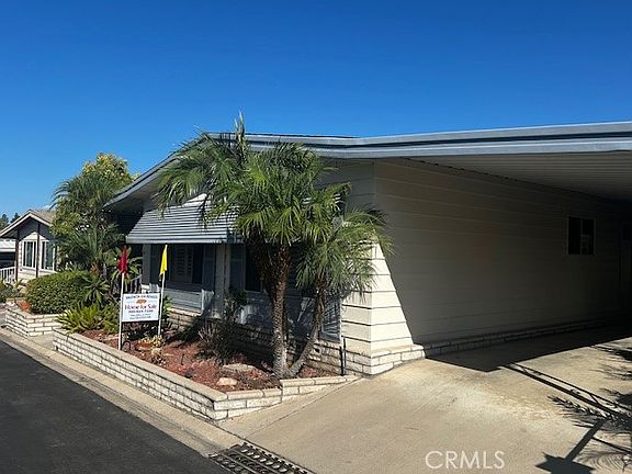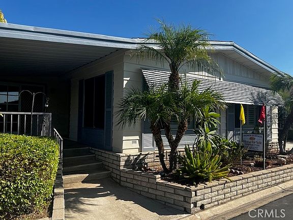 Spacious! Welcome to Valencia Lea, Highland’s premier +55 community! This large 2/2 home is nearly 1344 Sq ft, plus 3 bonus rooms not included in that square footage! 1978 Skyline Ramada home has great curb appeal featuring new paint, large porch and mature palms and citrus. You’ll love sitting out on the private front porch on this low traffic, quite street. This newly painted home includes 2 bedrooms, 2 baths with family/bonus room. The large open living and dining areas have plenty of windows with plantation shutters and slider letting in tons of natural light. The dining room features large built-ins for all your china. The kitchen has a built-in breakfast bar, newer appliances and includes the fridge. The family/bonus room is just off the entry and kitchen, perfect for informal living. The laundry room with included washer/dryer has plenty of storage with a door to the carport to easily get groceries in from your car. The guest bedroom features a Jack and Jill bathroom. The light filled primary bedroom features a large, mirrored closet, additional walk in closet and a bonus sitting area. The attached bath has a glass step-in shower stall and a separate tub to relax in. The full-length carport includes a storage shed. Don’t delay in taking a tour!