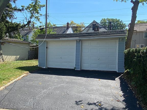Detached 2 car Garage & Driveway Off-street parking with additional storage space.