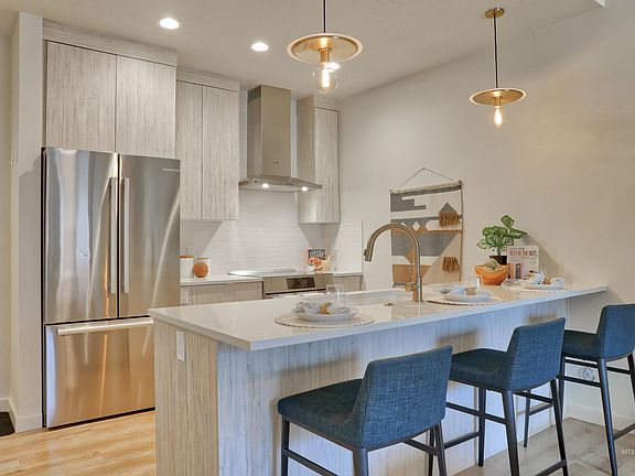 Amazing Condo in the Harris Ranch Lofts. This stylish modern unit was built in 2022 and has it All! Masterfully engineered construction with acoustics in mind and high-end features-finishes. Full Bosch appliance package makes this condo turn-key. Take in foothills & neighborhood views from your private patio. Just minutes from hiking trails, the Boise Greenbelt, Lucky Peak Reservoir and Downtown Boise & BSU. Incredible list of included features: Designated unit storage, bike storage w/cleaning station, and dog washing facility. There is a community rooftop deck with outdoor BBQ & lounge area perfect for parties & entertaining while enjoying panoramic views. Social gathering room offers billiards, big-screen TV & Kitchen. The resort-style community pool is just steps away. HOA dues include water, sewer, trash, all community amenities, snow removal, window washing, landscaping & EV charging. BTVA.