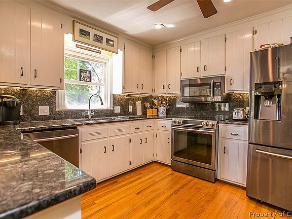 Private 1 acre waterfront lot on Vaughan's Creek. Southern exposure with over 100' frontage. Bulk headed shoreline & new pier. 4' MLW with protected anchorage. This Split Level home features beautiful hardwood floors, masonry fireplaces upstairs and down, wainscoting, and new paint. Remolded kitchen with granite countertops and stainless steel appliances. Great room opens to remodeled deck above the new sunroom. Downstairs offers family room with fireplace, full bath, sunroom, and mud utility room with access to the backyard. Includes attached garage, carport, and storage shed. Water softener, Cox cable and internet.