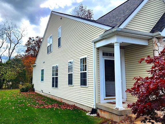 Welcome to this exceptional highly desirable Mayfield model located on the perimeter of the award-winning Traditions at Skippack active adult community. This home is on an expansive perimeter lot with scenic private views on all sides of the home. As you enter the dramatic two-story foyer you will experience a very tastefully decorated home with harmonious neutral shades throughout the home, expansive millwork with crown molding in the foyer, living room and dining room. Beautiful hardwood flooring welcomes you in the entrance foyer. The living and dining room have neutral carpeting that continues in the hallway to the spacious kitchen. The bright and cheerful kitchen with classic ceramic tile flooring includes beautiful maple cabinetry, complimentary black Corian surfaces on the counter and a large island for dining and culinary activities. A beautiful tile backsplash, a convenient pantry, and new stainless appliances, complete this wonderful kitchen. Large windows in the dining area enhance this bright and cheerful kitchen. Adjacent to the bright kitchen dining area is an expansive family room with vaulted ceilings, a ceiling fan, and neutral plush carpeting for a cozy feeling. Adjacent to the family room is the convenient covered patio with a very scenic wooded view to relax and unwind during the warm weather. The expansive first floor primary bedroom, conveniently located off the family room, provides a sitting area, tray ceiling with ceiling fan. The many windows in this large bedroom provide a bright and cheerful atmosphere. The luxurious neutrally decorated primary bath with ceramic tile, provides a wonderful soaking tub, a double vanity with neutral surface, designer fixtures and mirrors, and a large stall shower. The first floor also includes a very convenient butler's pantry, guest powder room, and laundry room with convenient storage cabinetry. The carpeted stairway leads to a large second floor that includes two full-sized bedrooms with convenient closets, a full neutral décor bath with shower tub. This carpeted loft area is also a great retreat for guests to relax and enjoy some privacy during visits. There is also a large storage area accessible from one of the bedrooms. Finally, a full unfinished basement provides significant space for storage, a workshop, or possible recreational space. This wonderful home has a brand new roof and a newer HVAC system for many carefree years of ownership. This exceptional community provides residents with a beautifully decorated clubhouse with great room, library, exercise room and billiards room. A large heated community salt water pool is provided for residents and guests to enjoy in the warm weather. A multi use tennis and pickle ball court are also available. A convenient walking path winds through the community to exercise safely. There are many nearby shopping and dining areas in the charming Skippack Village, and the expansive Provincetown shopping, dining, and entertainment complex in Collegeville. This exceptional home has been meticulously maintained and is truly in “move in” condition. If you’re looking for home in this great active adult community, act quickly!