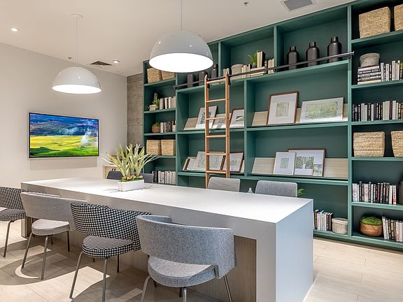 - Exterior features: BBQ/Picnic Area, Bicycle storage, Car Charging Station, Courtyard, Efficient Appliances, Free Weights, Green Building, High Ceilings, Media Room, Night Patrol, On-Site Maintenance, On-Site Management, Package Receiving, Stainless Steel Appliances, View Type: View