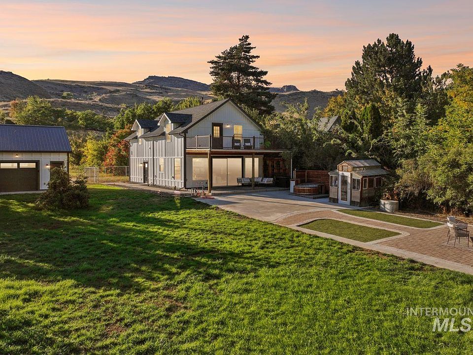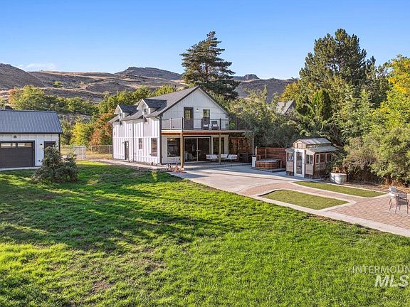 Shimmering waterfallPropane fire pitTankless-heated hot tubIndustrial-chic metal accentsPayette river frontageFresh exterior paintBreathtaking views