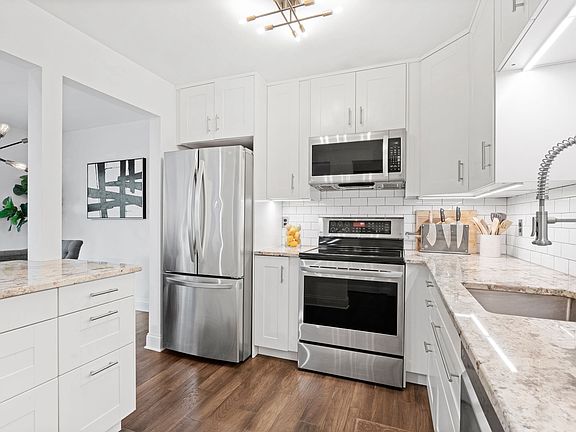 Welcome home to this corner-unit condo, beautifully updated and move-in ready. The open kitchen features white shaker cabinets, granite countertops, under-cabinet lighting, and stainless steel appliances. The spacious living room offers modern fixtures and dimmable LED lighting that creates a warm, welcoming atmosphere.