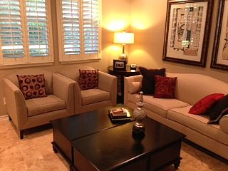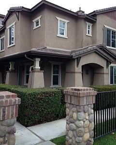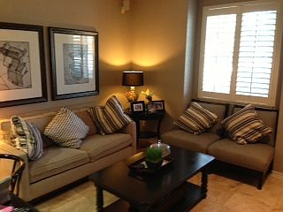 Purchased originally as a model home with upgraded features such as granite counter top, recessed lighting, built in surround sound, travertine flooring downstairs and hardwood flooring upstairs. Microwave and oven included. Close to hospital, schools, shops, restaurants and mall. 2 car private garage and gated community pool. All 3 bedrooms upstairs, 2 bathrooms upstairs and 1 half bathroom downstairs. Laundry hookups in laundry room.