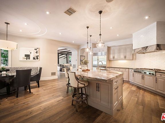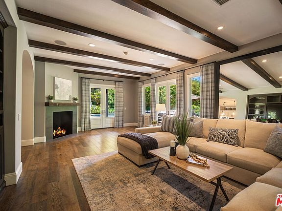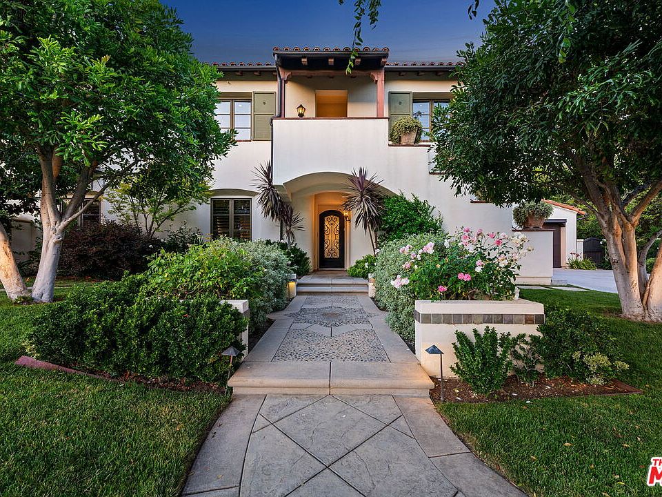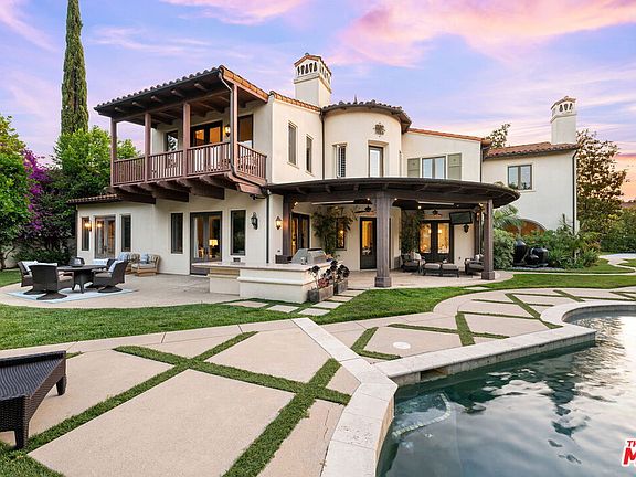 Welcome to 3850 Prado De Las Uvas an extraordinary Mediterranean estate nestled in one of Southern California's most prestigious guard-gated communities: The Oaks of Calabasas. Celebrated for its exclusivity, security, and resort-like atmosphere, The Oaks offers an elite lifestyle with amenities and privacy reserved for the most discerning homeowners. Privately situated at the end of a tranquil cul-de-sac, this exceptional estate rests on an expansive, over half-acre lot, offering both seclusion and sophistication. With approximately 6,480 square feet of living space, the home features 5 spacious ensuite bedrooms and a highly adaptable floor plan designed for modern living. Upon entry, you're welcomed by warm architectural detail, elegant archways, and curated finishes that reflect timeless Mediterranean charm. Warm wood floors span much of the main level, complementing the home's rich textures and tones. Built by the renowned Luxury Lang builders, the residence is crafted with enduring quality and timeless appeal. At the heart of the home is the great room, featuring striking beam ceiling detail, custom fireplace and an effortless flow from the gourmet chef's kitchen complete with top-of-the-line stainless steel appliances, a dramatic oversized island, custom cabinetry, double ovens, and an inviting breakfast nook.Upstairs, the primary suite is a private sanctuary, accessed through a quiet retreat foyer and highlighted by a warming fireplace and a covered veranda overlooking the lush grounds. The spa-inspired primary bath features an oversized shower, soaking tub, designer window treatments, and exquisite custom lighting.Additional amenities include a spacious loft ideal for a secondary family room or office, a state-of-the-art home theater, game room and gym, The resort-style backyard is designed for grand entertaining and peaceful relaxation alike with a sparkling pool and spa, built-in BBQ, covered patio lounge, and a full-size sport court, all surrounded by mature landscaping and manicured lawns. As a resident of The Oaks of Calabasas, you gain exclusive access to premier amenities, including a private clubhouse, tennis and pickleball courts, basketball, a resort-style pool, gym, and scenic community park all within a 24-hour guard-gated setting that offers peace of mind and privacy. All of this, just minutes from Malibu's beaches, upscale shopping and dining at The Commons, and within the award-winning Las Virgenes School District.