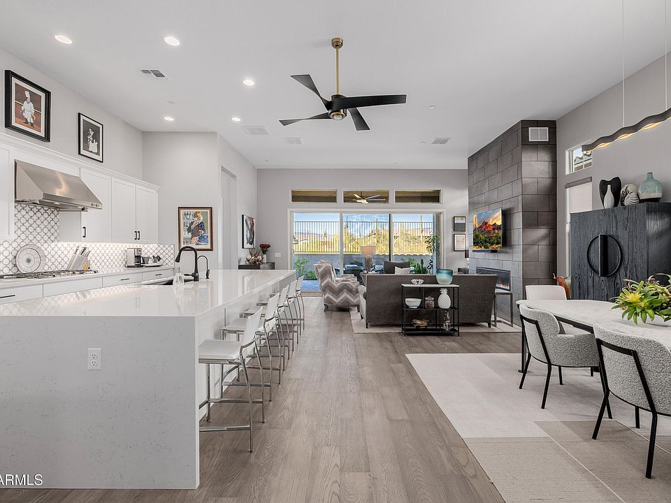 NESTLED ON A $65K PREMIUM CDS LOT IN UPSCALE, AMENITY-RICH GALLOWAY RIDGE, WITH BLACK MTN TO FRONT & NAOS/ MOUNTAIN PANORAMA TO REAR, THIS EXQUISITELY DECORATED VILLA IS AN ABSOLUTE STUNNER--NO EXPENSE SPARED in $150K+ deco selections, upgrades & options + $60K in after-market improvements! 12' ceilings & gorgeous oak hardwood flooring t/o enhance interior drama w/ 60''-linear fireplace forming striking great room focal point. 3-BR/3-BA Ascent plan offers private guest ste. and Owner's 'Ultra Spa' bath. High-end kitchen features premium appliances &, quartz w/custom-tiled backsplash, waterfall island, LED lighting, 42'' cabinets, wine/beverage center & more. Multi-slide glass doors display pro-landscaped granite-paved patio w/fireplace & serene vistas beyond! SEE More & DOCS! WITHIN WALKING DISTANCE TO ALL THE CHARMING TOWN OF CAVE CREEK HAS TO OFFER, INCLUDING SHOPPING, DINING & ENTERTAINMENT, GALLOWAY RIDGE ALSO OFFERS FANTASTIC COMMUNITY AMENITIES: Heated pool and spa, adjoining outdoor kitchen/picnic area, fitness center, pickleball court, dog park.