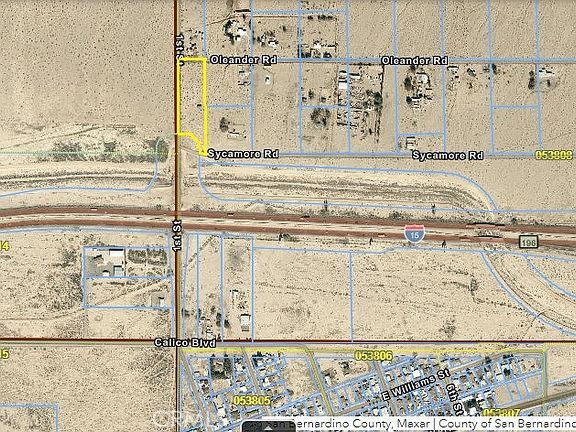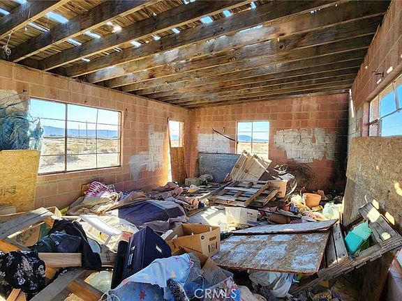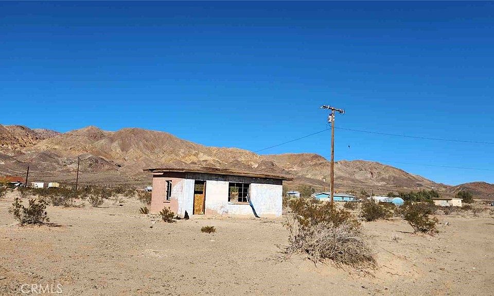 400 Sq Ft Cabin with 2.8 Acres of flat land. Next to existing homes and I-15 In Yermo with power at street. with Great Mountain and Desert Views. Block building, roof collapsed