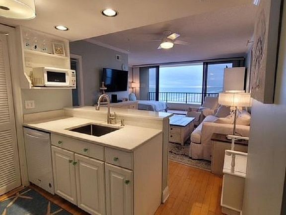 Check out this beauty from the 22nd floor of the highly sought out Enclave Condominium on the Atlantic City boardwalk. This tastefully decorated, recently remodeled studio efficiency is perfect for that summer/winter get away. Open your floor to ceiling doors and smell the salt air from your private balcony with southern unobstructed views of the ocean and the bay. The kitchen and baths are a neutral décor' with quartz counters and newer appliances. The flooring is classic real wood. The Enclave located beach and boardwalk front, offers an indoor heated pool, an outdoor pool, 2 large hot tubs, fitness center, parking garage, front desk 24/7 security, bike storage. Make your appointment to see this one. Surely you will not be disappointed.
