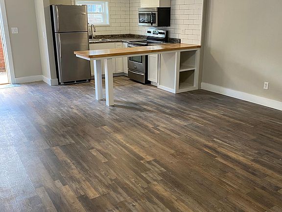 Beautifully renovated large one bedroom one bath apartment. Stainless steel appliances in kitchen with tile backsplash counter to ceiling and a gorgeous custom butcher block counter. Upgraded vinyl flooring throughout. New paint throughout. Garage available for $50 per month. Utilities are tenants responsibility. Brand new windows and siding to exterior.