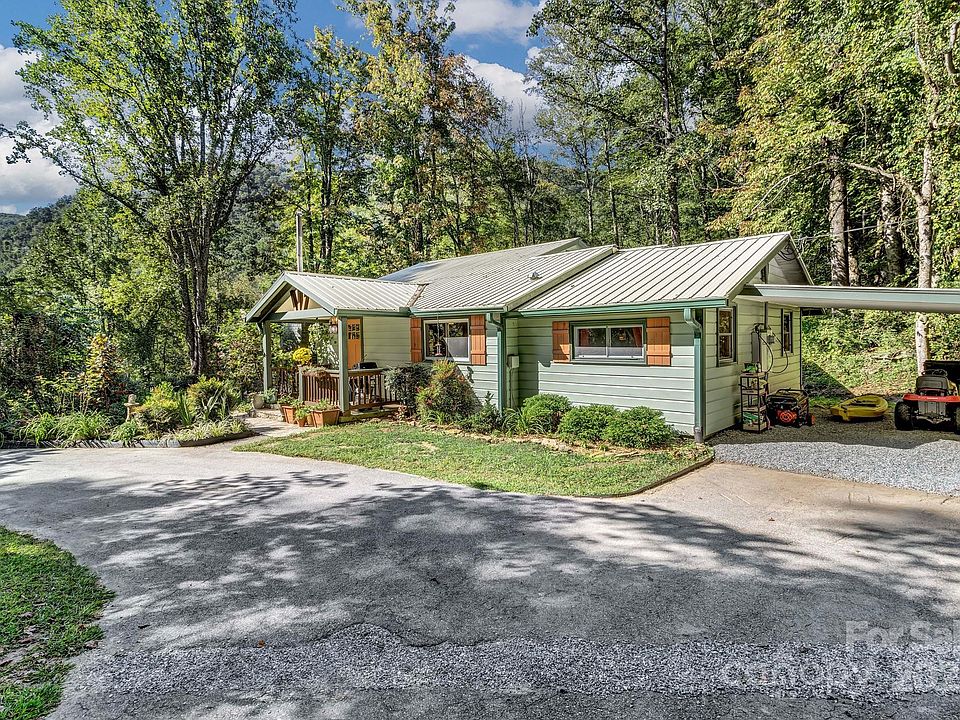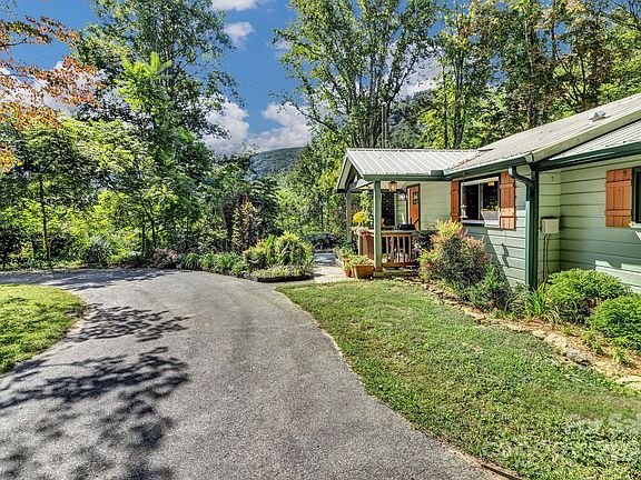 RARE FIND. About 30 minutes to Asheville. Remarkable cottage with a stunning waterfall on the property. Beautiful long-range mountain views from this sun-filled, storybook unique property. This updated spectacular cottage has all of the peaceful elements you could wish for! Living room and primary suite offer direct access to multi level decking, with 6 person hot tub, where you can take in the beauty of the natural surroundings, long range mountain views, peaceful stream with mature flowering trees, shrubs. There is a finished guest cottage located on the property. Direct access to Little Bearwallow trail runs along the property and Upper Hickory Nut Trail entrance is across the street. Once inside this peaceful haven, you'll be welcomed by an open floor plan, vaulted ceilings and thoughtful color choices throughout. Fabulous kitchen with quartz tops, quality cabinetry and slate appliances. Split bedroom plan with spacious primary, walk in closet w/en-suite bath, double sinks and gorgeous walk in tile shower. Second bedroom features double closets, gorgeous ceiling detail and built in dresser. In the past this home was used for a very successful short term rental. Come check this special home out! See adjacent parcel for sale MLS 4304672 which can be purchased together or separately.