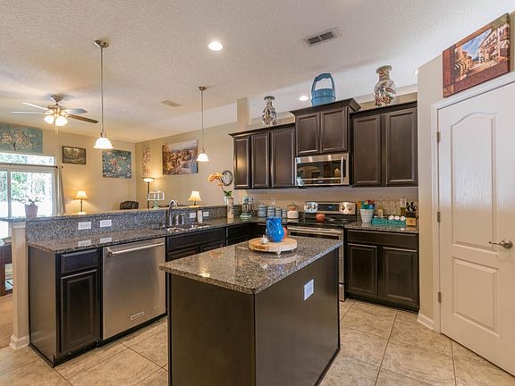 Beautiful 4 bedroom 2 bath home in desirable Two Creeks Neighborhood, fully fenced on preserve lot. Built in 2013 with over 1900 sqft of living space. Well-equipped kitchen features stainless steel appliances, double oven, granite counter tops and 42'' espresso cabinets. Living room has 10' ceilings with knockdown texture. Elegant chair rail and wainscoting in dining. Master suite very spacious with large walk in closet, double trey ceilings and its own private door to covered lanai. Master bath features double sinks in granite vanity top, soaker tub and separate shower. All wet areas in home have tile floors. Community waterpark and sports facilities are amazing. Don't miss out on this one!